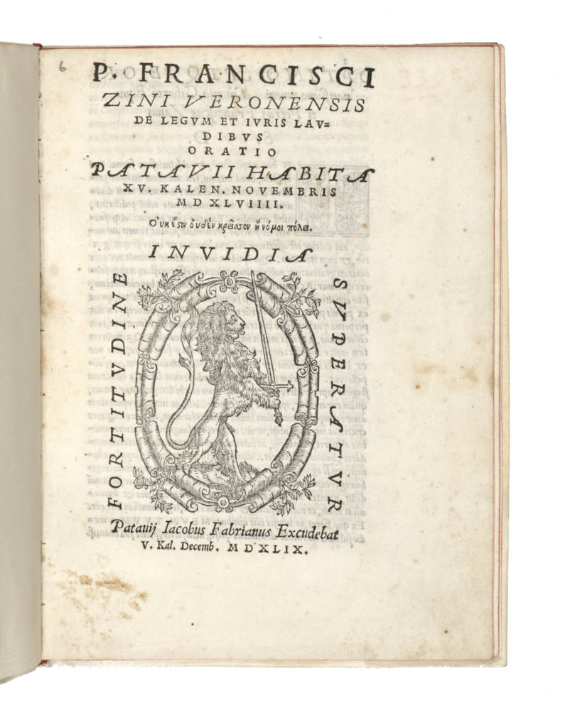 De legum et iuris laudibus Oratio Patavii habita XV. Kalen. Novembris MDXLVIIII.