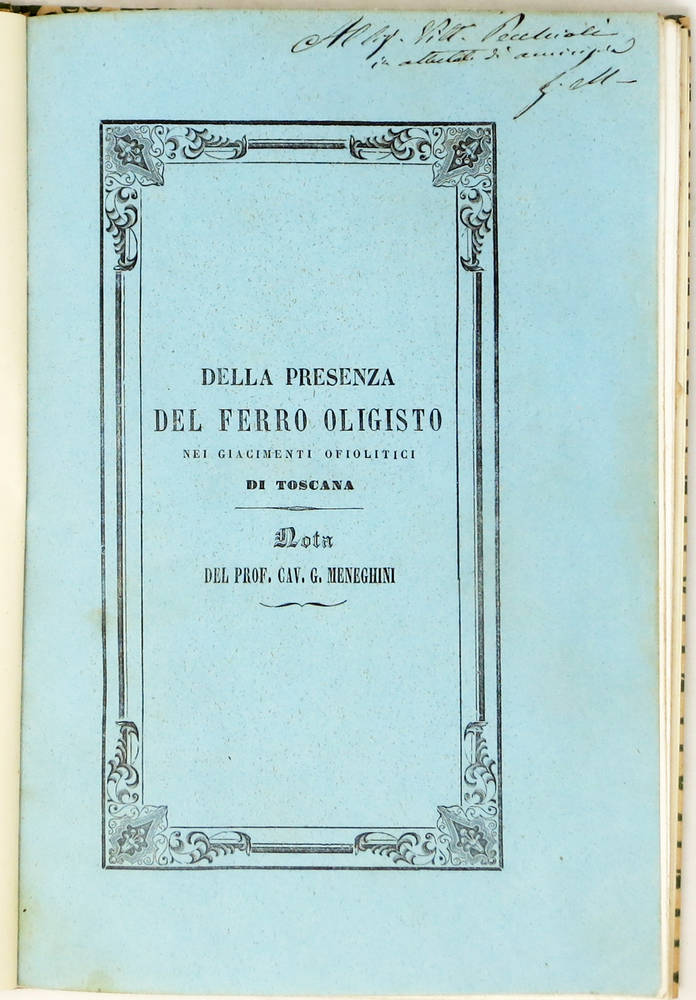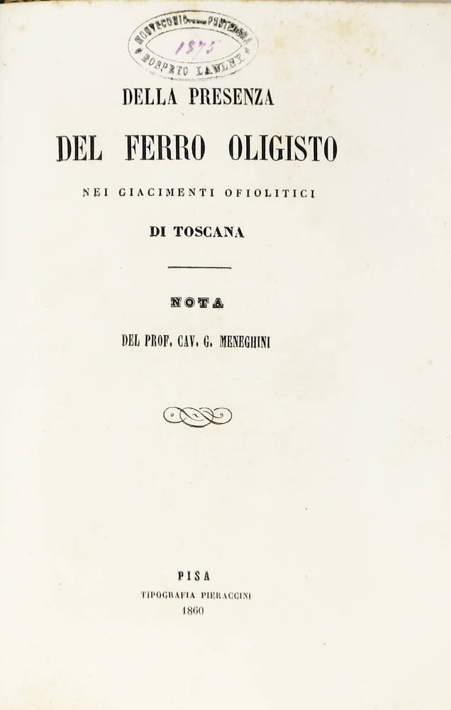 Della presenza del ferro oligisto dei giacimenti ofiolitici di Toscana. (Estr.).