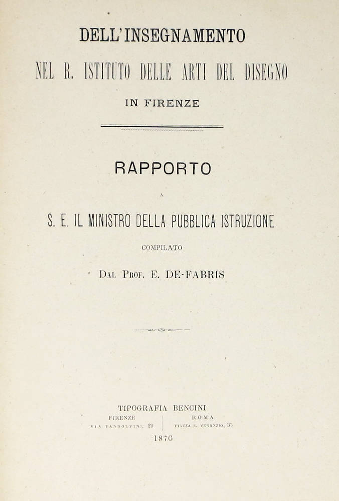 Dell'insegnamento nel R. Istituto delle Arti del disegno in Firenze. Rapporto a S.E. il Ministro della Pubblica Istruzione.