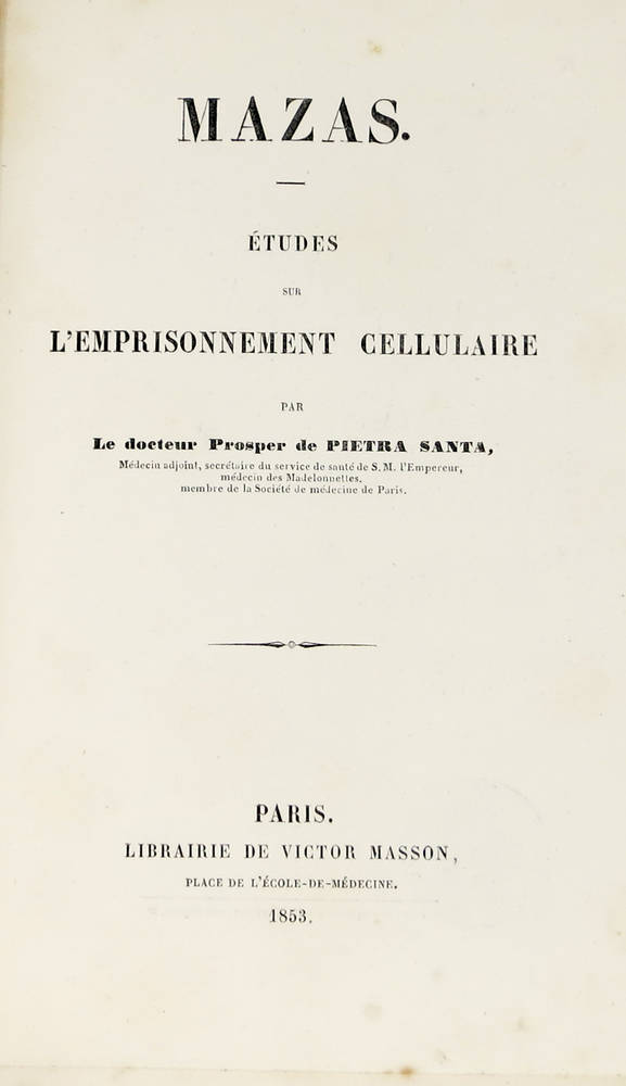 Paris, Librairie de V. Masson (Imprimerie de L. Martinet), 1853.