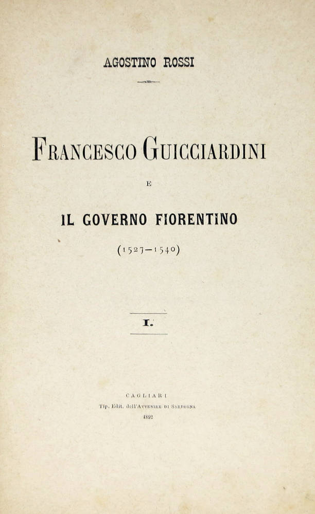 Francesco Guicciardini e il Governo Fiorentino. (1527-1540).