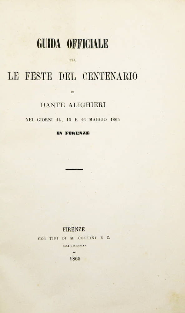 GUIDA officiale per le feste del centenario di Dante Alighieri nei giorni 14, 15 e 16 maggio 1865 in Firenze.