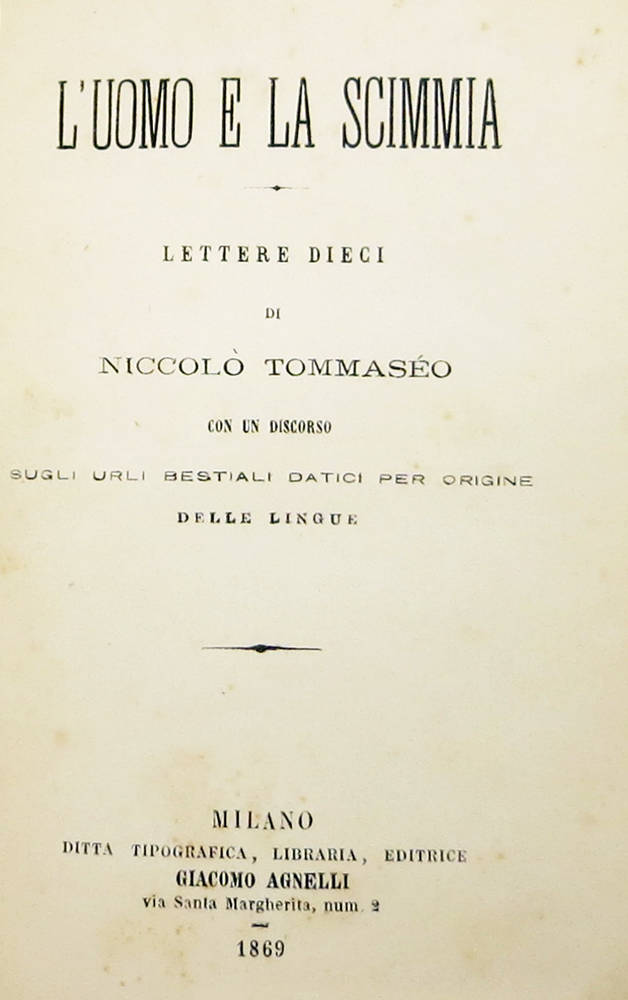 L'uomo e la scimmia. Lettere dieci, con un discorso sugli urli bestiali datici per origine delle lingue.