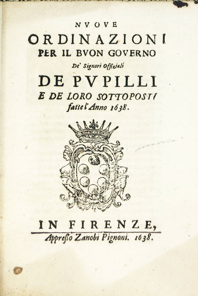 NUOVE Ordinazioni per il buon governo de' Signori Offiziali de Pupilli e de loro sottoposti fatte l'anno 1638.