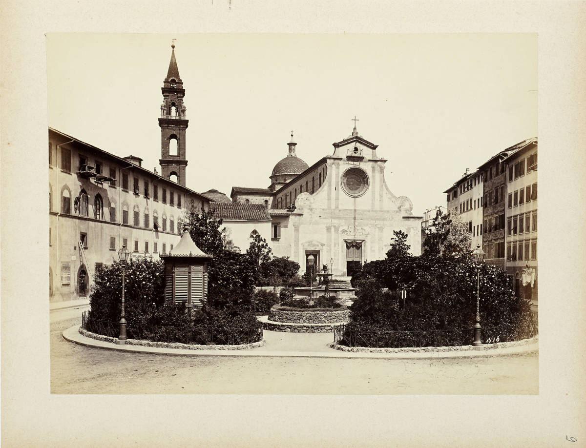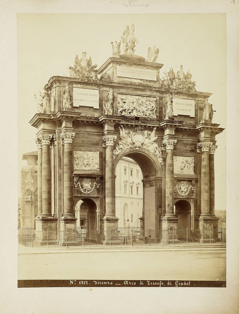 In-4° (mm 310x255), con 21 fotografie, dimensioni circa mm 258x198, applicate su cartoncini, raffiguranti vedute di piazze, monumenti, palazzi ed interni di Firenze, di cui 11 di vedute esterne e 10 di interni. Legatura in mezza pelle coeva, piatti in tela, sguardie in carta marmorizz., dorso e piatto posteriore staccato.