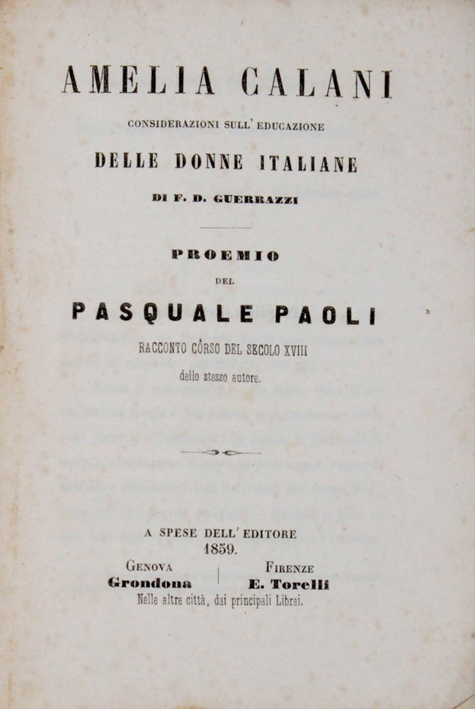 Amelia Calani. Considerazione sull'educazione delle donne italiane... Proemio del Pasquale Paoli. Racconto côrso del secolo XVIII dello stesso autore.