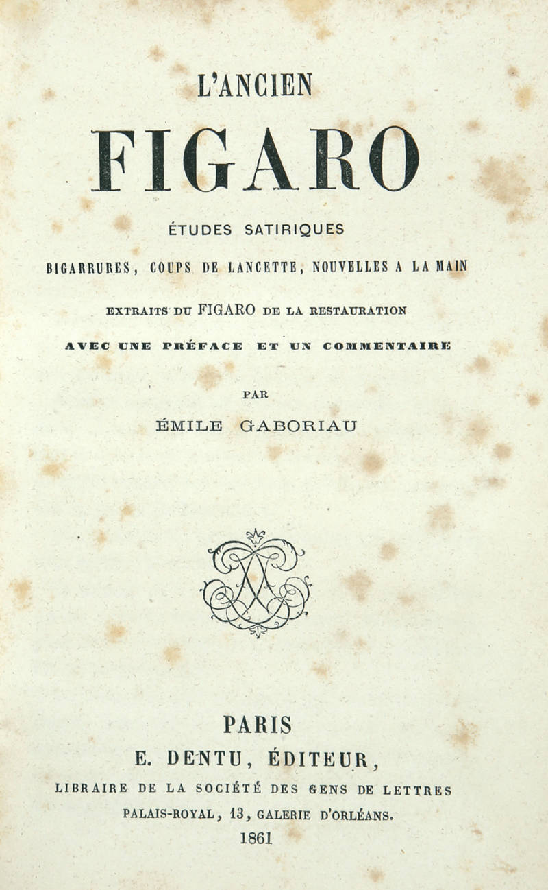 ANCIEN (L') Figaro. Etudes satirique bigarrures coups de lancette, nouvelles a la main. Extraits du Figaro de la Restauration, avec un Préface et un commentaire par Emile Gaboriau.