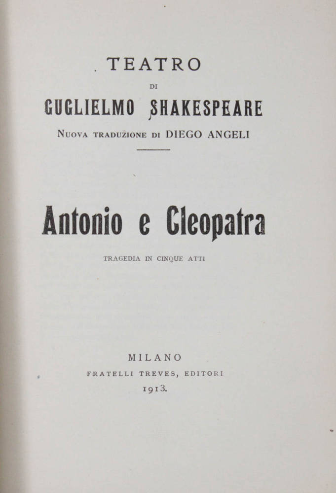 Antonio e Cleopatra. Tragedia in cinque atti. Nuova traduzione di Diego Angeli.