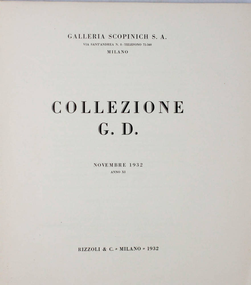 COLLEZIONE G.D. Milano, Galleria Scopinich, novembre 1932.