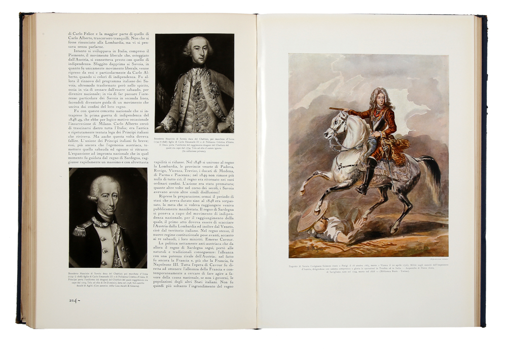 In-4° grande, pagine 280, [2] con 22 tavole a colori fuori testo, 420 illustrazioni e 15 carte di schizzi geografici nel testo. Stemma sabaudo al centro del piatto ant. Legatura in mezza pelle editoriale, piatti ricoperti in stoffa azzurra un poco lisi.