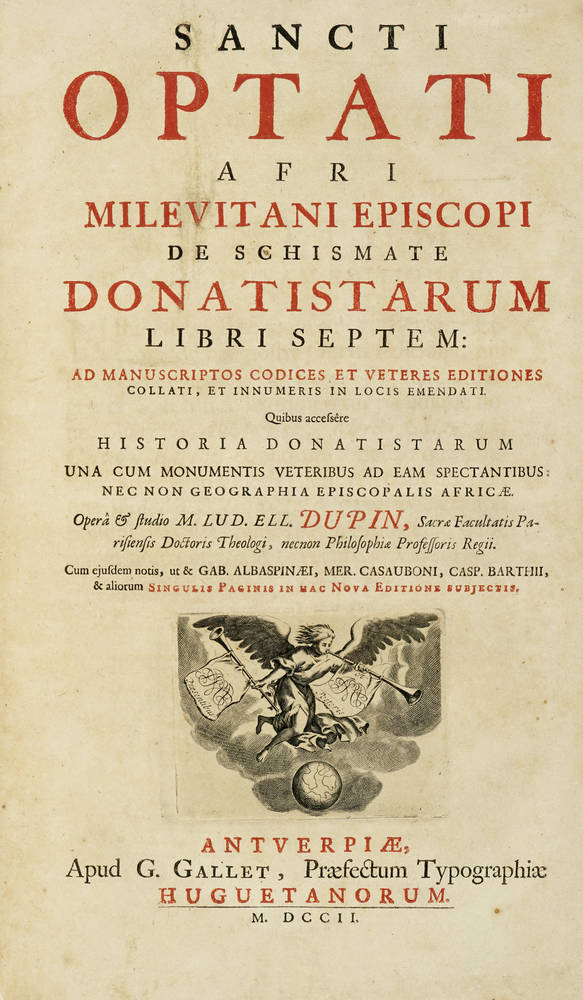 De Schismate Donatistarum Libri Septem... Quibus accessêre Historia Donatistarum una cum Monumentis veteribus ad eam spectantibus: nec non Geographia Episcopalis Africae. Operâ & studio M. Lud. Ell. Dupin... Cum ejusdem notis, ut & Gab. Albaspinaei, Mer. Casauboni, Casp. Barthii, & aliorum singulis paginis in hac Nova Editione subjectis. (Editio Tertia ex revisione).