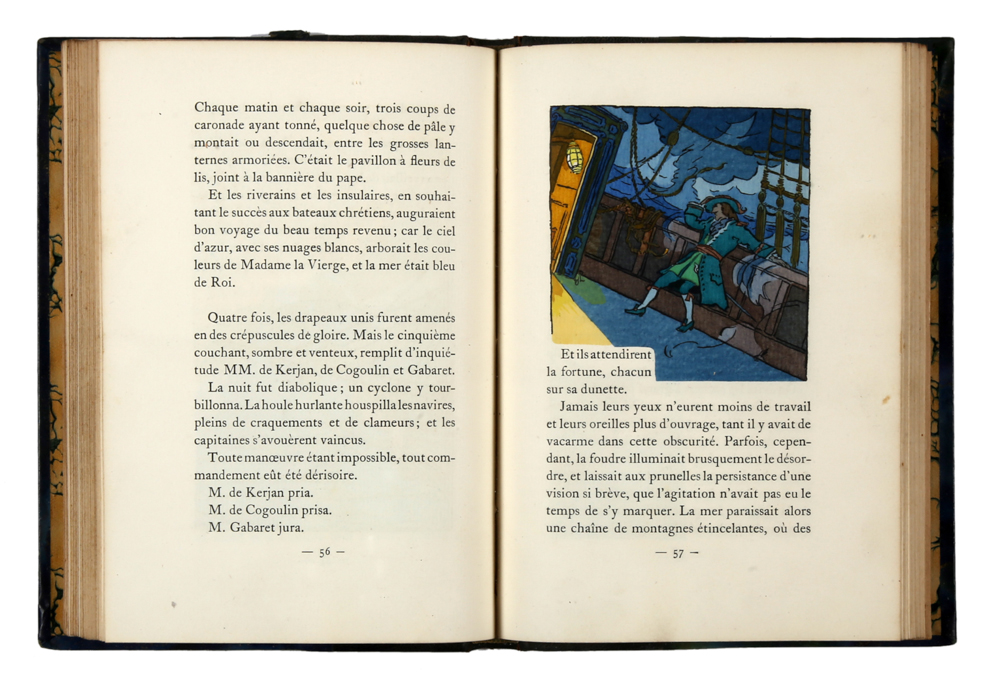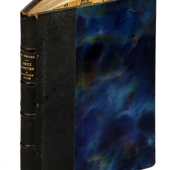 In-8° (mm 195x142), carte [3], pagine 96 + carte [5] (2 bianche). Su carta grave, con 37 picc. acquarelli "coloriés a la main par Eugène Charpentier" nel testo. Legatura in mezzo marocchino oliva, piatti a sguardie marmorizzate, titolo oro al dorso. Conservata all'interno la copertina anteriore. Bell'esemplare.