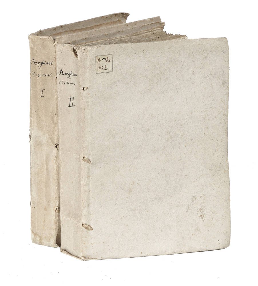 2 volumi in-4°(mm 275x195), Pagine XXI,[1], 518,[2] bianche; IV, 641,[1] con errata in fine, ma per ripetizioni di numerazione da pagine 289-296 (648). Bel Ritratto dell'Autore, delineato da G. Zocchi, inciso in rame da Franc. Allegrini, posto al principio dell'opera; molte figure xilografiche nel testo (vedute, piante, iscrizioni, stemmi nobiliari). Cartonato coevo. Ex libris di antica appartenenza applicati al verso dei frontespizi.Bellissimo esemplare in carta grave, con barbe. Esemplare della Variante B secondo ICCU con l'Errata in fine.