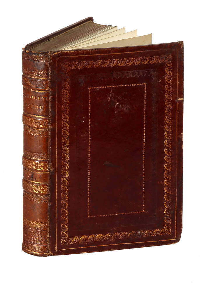 In-8° (mm 220x140), pagine [2], 7, 211, [1]. Bella legatura d'amatore in pieno marocchino rosso, dorso decorato in oro a 4 nervi, 3 riquadri oro e 1 a freddo ai piatti. Bell'esemplare, in carta grave celestrina.
