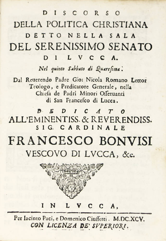 Lucca, I. Paci, e Dom. Ciuffetti, 1695.
