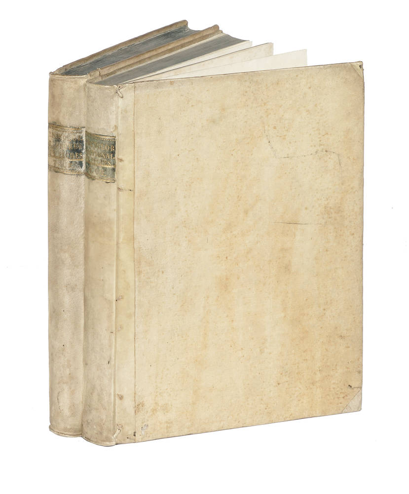2 volumi in-folio (mm 290x205), pagine XII, 323, [1], (testo); 27, [1], con tavv.numer. 114 contenenti 132 inc. in rame da Scattaglia. Legatura in mezza pergamena coeva con punte, piatti in cart. Piccoli fori di tarlo ai margini di poche pagine al primo e al secondo volume, ma buon esemplare.