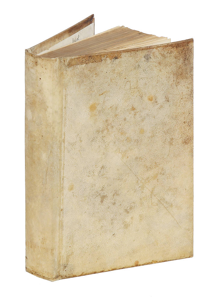 In-8° (mm 161x111), pagine 432. Legatura in pergamena antica rimontata. Sul taglio inferiore nome mss. dell'autore. Buon esemplare.