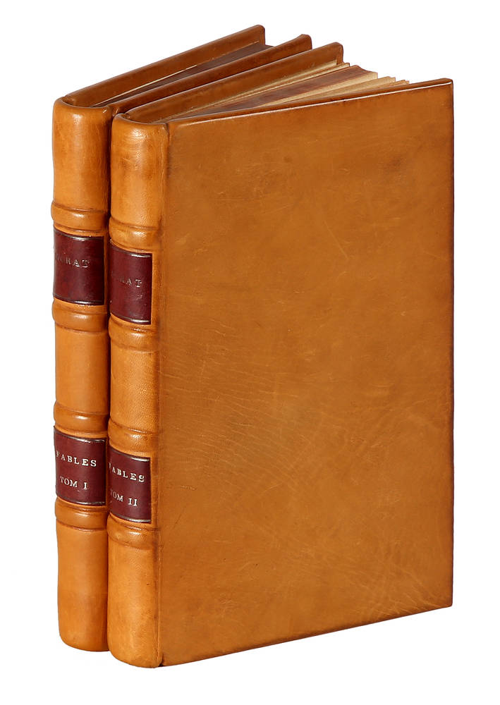 2 volumi in-8°( mm 188x118), pagine XXXII, [2], 144; 145-309, [3]. 2 antiporte e 1 front. figurati, 1 tavola fuori testo di Marillier, inc. da De Launay, e con 99 vignette e 99 culs-de-lamp, dello stesso Marillier, inc. da vari autori in ottima morsura. Opera con arrossature ed aloni anche intensi nel margine interno di varie carte nei due volumi. Bella legatura in pelle moderna con due tasselli pelle con titolo oro sui dorsi.