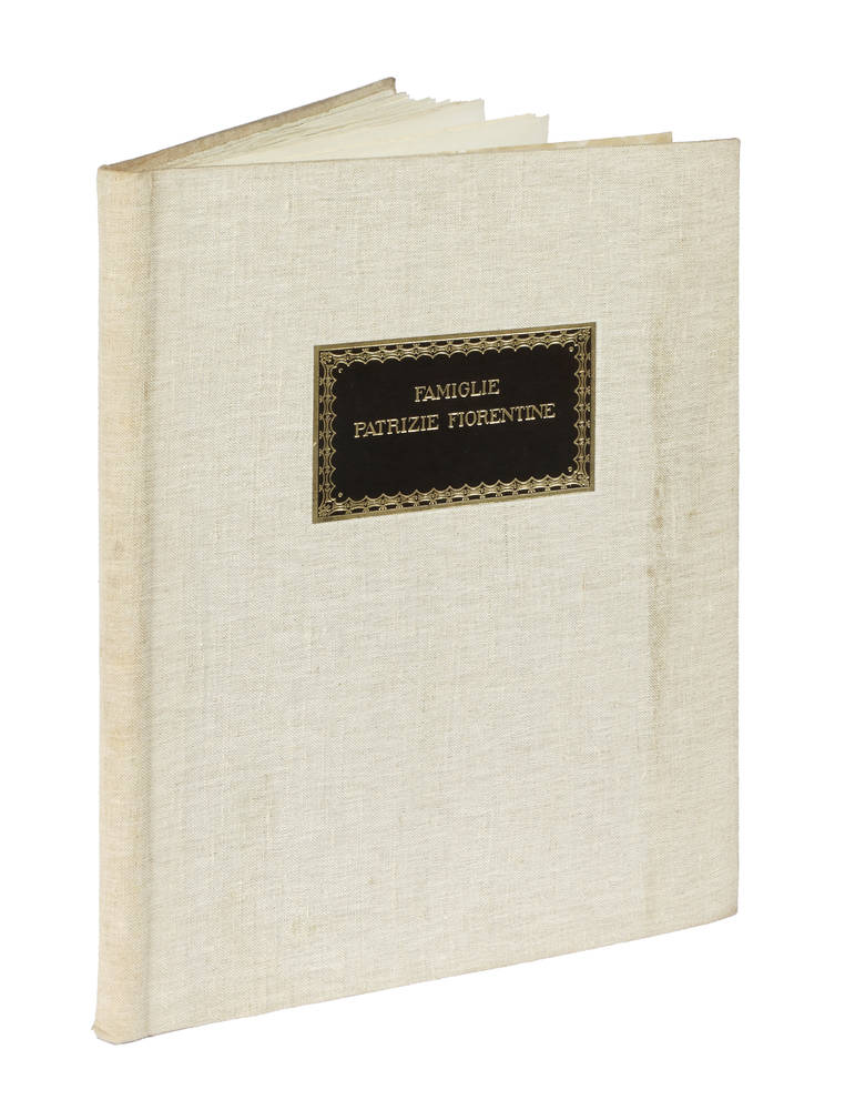 In-folio (mm 505x370). Legatura originale in tutta tela grezza. I (unico pubblicato): -Barbolani di Montauto-Bellini delle Stelle-Ciaini da Montauto-Ramirez de Montalvo-Suarez de la Concha-Ximenes de Aragona. "Ne sono state impresse solo 150 copie numerate". Depositaria esclusiva la Libreria Gonnelli. Opera eseguita sulla falsariga del Litta e del Passerini, di cui è complementare.