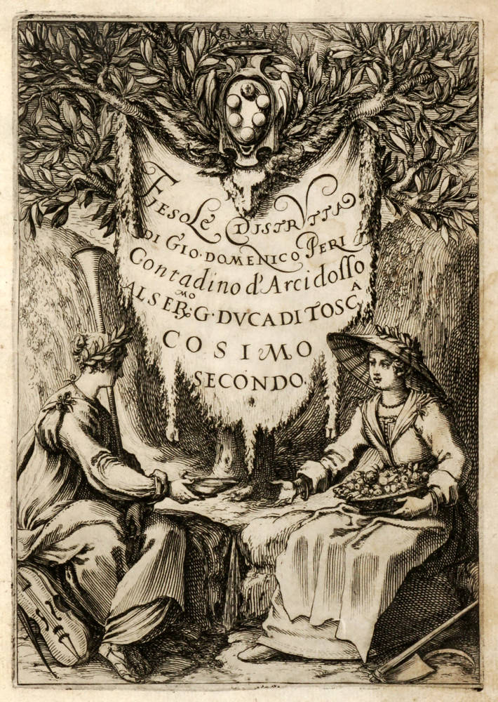 Fiesole Distrutta / Di Gio. Domenico Peri / Contadino d'Arcidosso / Al Ser.mo G. Duca Di Tosc.a / Cosimo / Secondo.