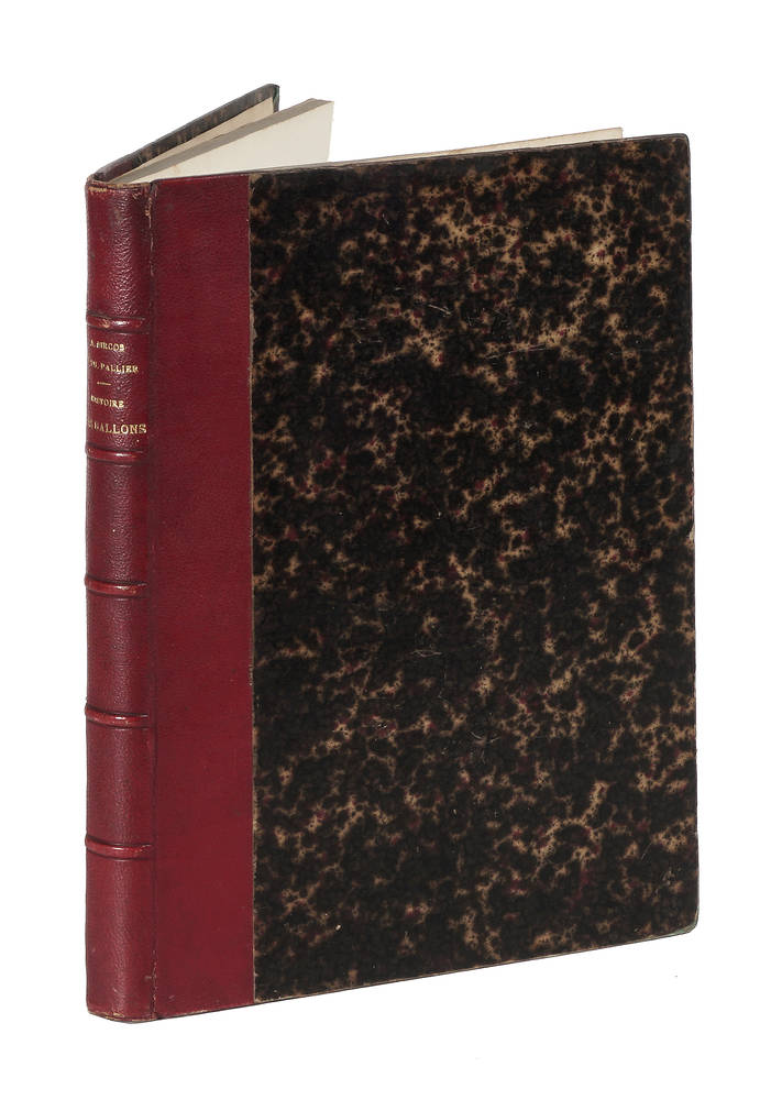 Prima edizione di questa curiosa opera sulla storia della nascita delle mongolfiere, sui palloni aerostatici, inventati dal fotografo Nadar, il quale effettuò numerose ascensioni aereostatiche. Brocket, 11263. Tissandier, 35. Dictionnaire des Estampes & Livres illustrés sur les ballons & machines volantes des debouts jusques vers 1880, Montpellier, 1929, 128.