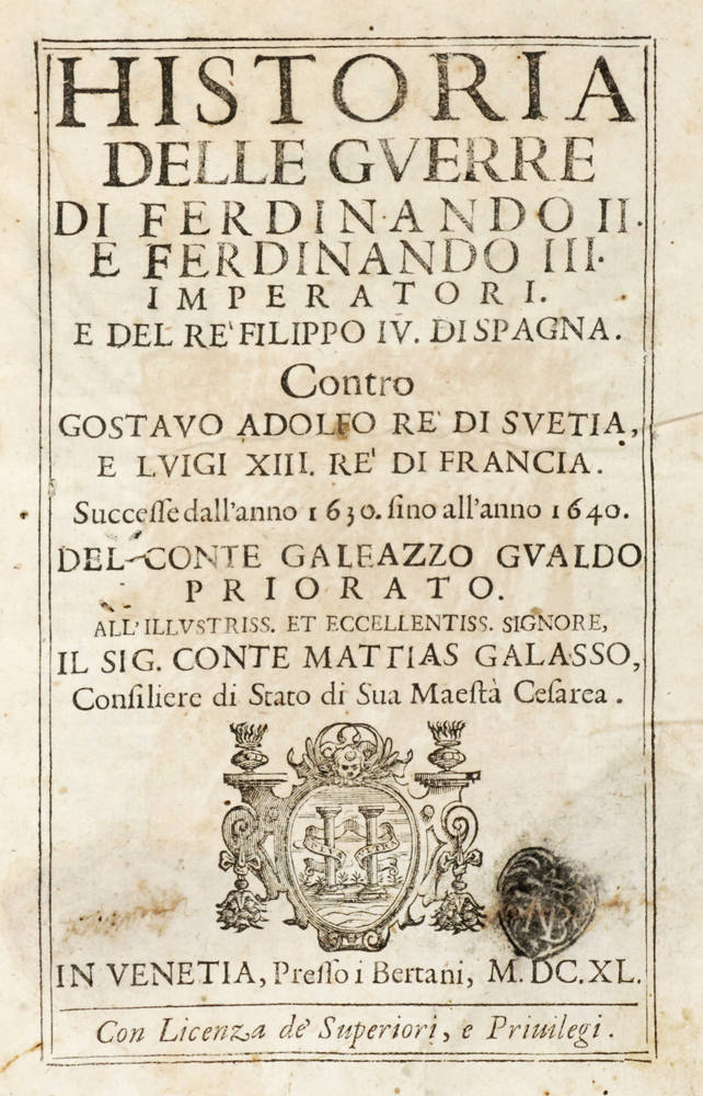 Historia delle guerre di Ferdinando II e Ferdinando III imperatori e del re Filippo IV di Spagna contro Gustavo Adolfo re di Svetia e Luigi XIII re di Francia, successe all'anno 1630 fino all'anno 1640. Seconda Impressione.
