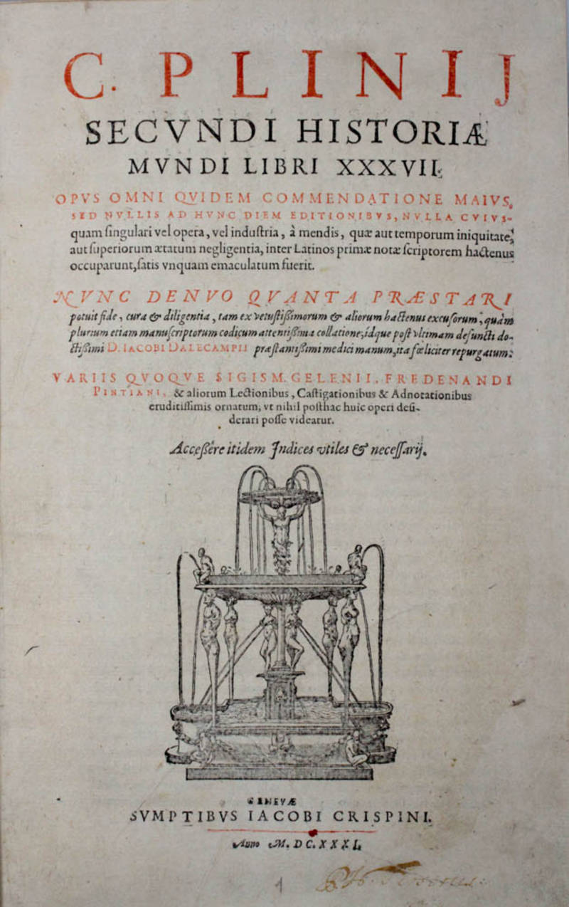 Historiae mundi libri XXXVII. Opus omni quidem commendatione maius...D. Iacobi Dalecampii...repurgatum...Sigism. Gelenii, Fredenandi Pintiani...adnotationibus...