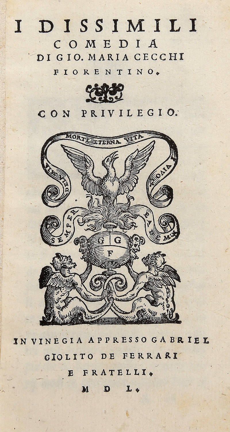 Edizione originale. Bongi I, 315. Allacci, 259. Gamba, 328.