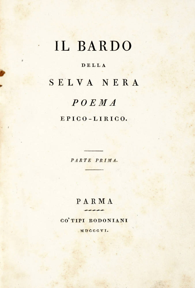 Il Bardo/ Della/ Selva Nera/ Poema/ Epico-Lirico/ Parte Prima./
