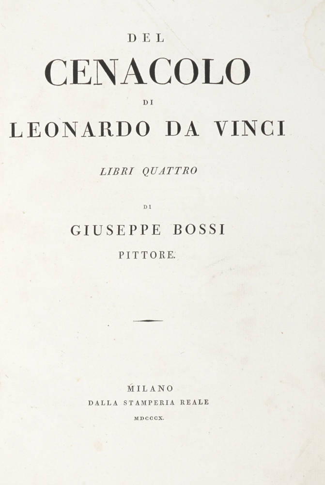 Verga, Bibl. Vinciana, 298. Opera rara e ricercata, stampata per cura di Leonardo Nardini, ispettore della Stamperia Reale. Tratta principalmente del Cenacolo, ma anche delle teorie di Leonardo intorno alle proprorzioni del corpo umano. Le belle tavole, eseguite con l'intento di restituire in facsimile l'effetto dei disegni leonardeschi, contengono anche la famosissima figura virile con doppie braccia e doppie gambe inscritta nel cerchio. Cicognara, 3373: "L'opera del Cenacolo è il libro meglio scritto che da noi si conosca in fatto di critica, il quale abbia per iscopo d'illustrare una grand'opera dell'arte. L'edizione splendissima è ornata d'un bellissimo ritratto di Leonardo e di varie tavole tratte da disegni originali del Vinci con una fedeltà, e un gusto insuperabile".