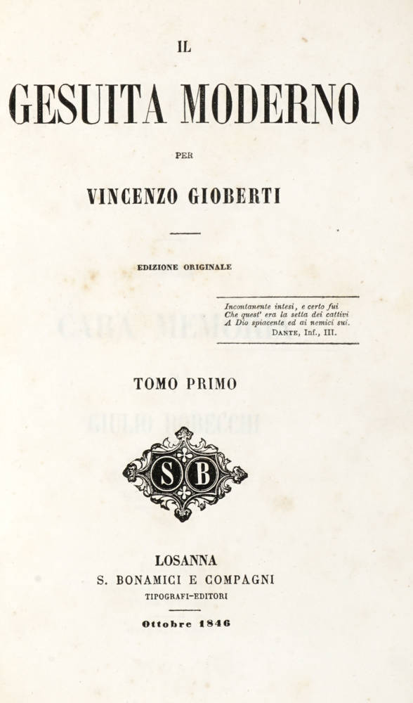 Il Gesuita moderno per Vincenzo Gioberti. Edizione originale.