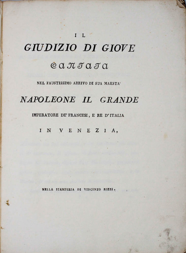 Il Giudizio di Giove. Cantata, nel faustissimo arrivo di Sua Maestà Napoleone il Grande...in Venezia.
