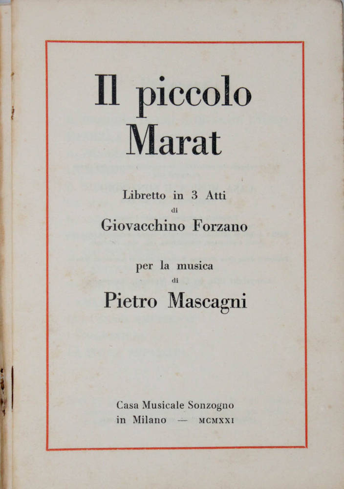 Il piccolo Marat. Libretto in 3 atti per la musica di Pietro Mascagni.