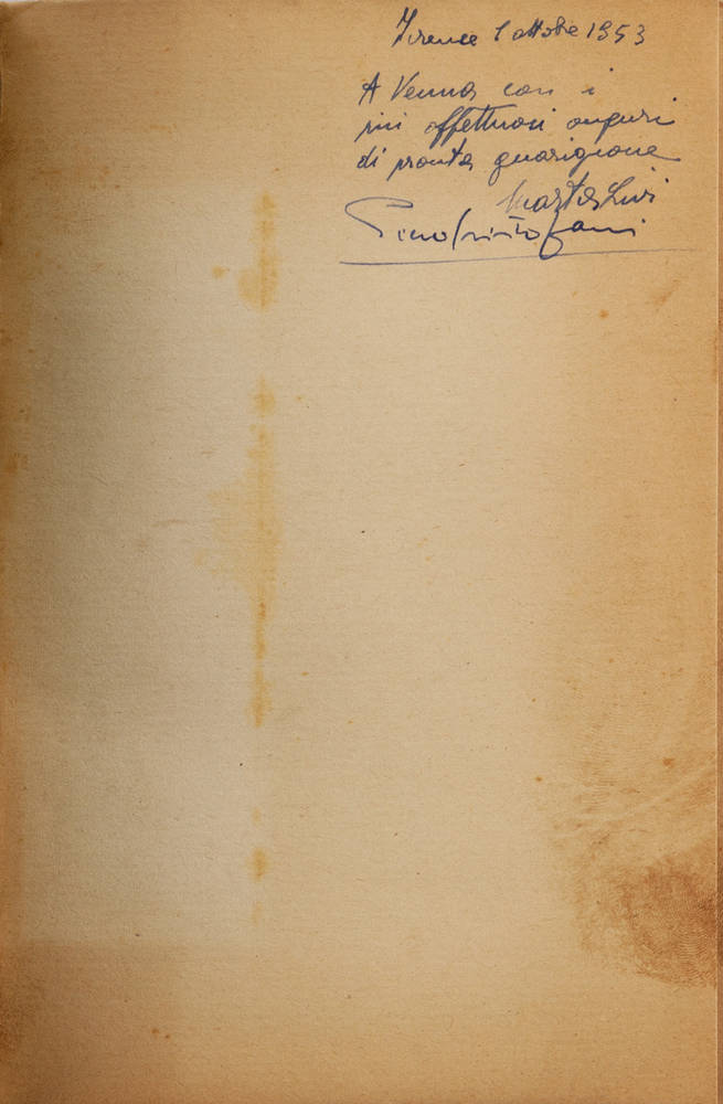 In-8° (mm 195x132), pagine [160] + carte [2] (nota tipogr. e annuunci edit.). Brossura editoriale. Unitovi biglietto autografo. Nota manoscritta in antiporta datata: "Firenze 1 ottobre 1953".