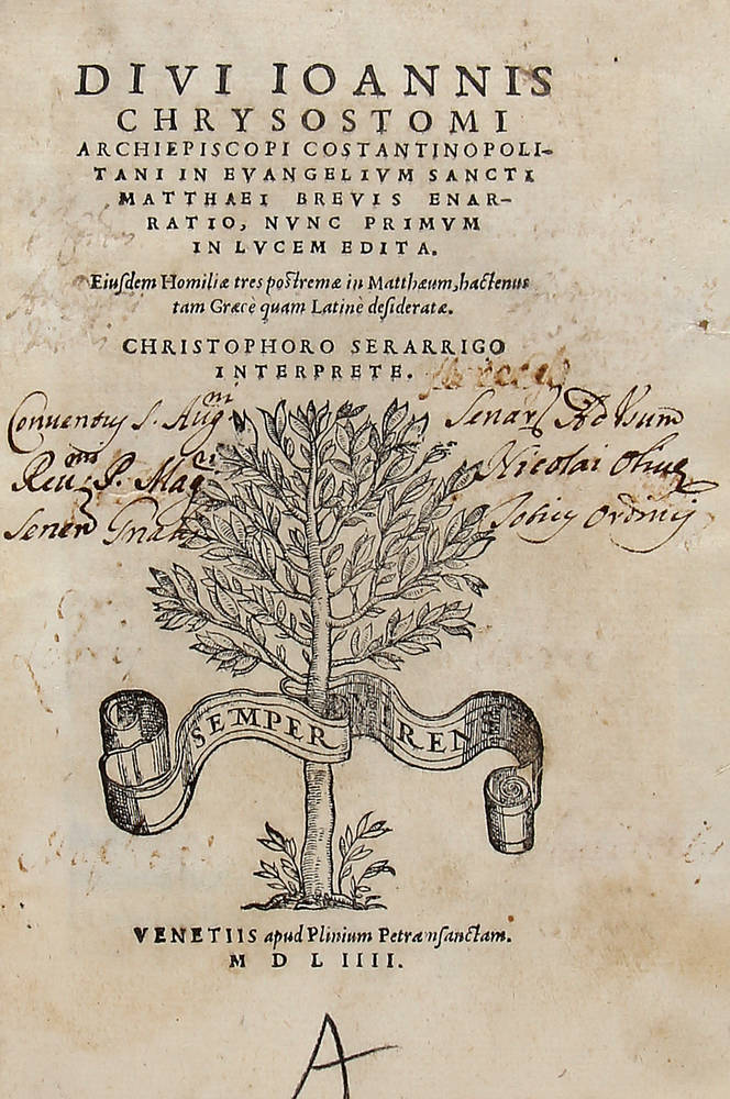 In Evangelium Sancti Matthaei brevis enarratio, nunc primum in lucem edita. Eiusdem Homeliae tres postremae in Matthaeum, hactenus tam Gracè quam Latine desideratae. Christophoro Serarrigo Interprete.