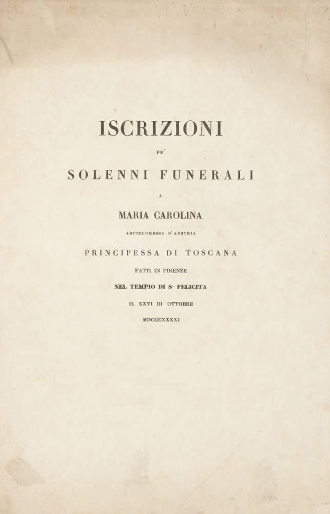 Iscrizioni pe' solenni funerali a Maria Carolina arciduchessa d'Austria principessa di Toscana fatti in Firenze nel tempio di S. Felicita il XXVI di Ottobre MDCCCXXXXI.