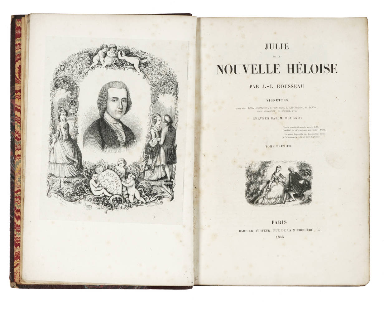 Julie ou la nouvelle Héloise...Vignettes par MM. Tony Johannot, E. Wattier, E. Lepoitevin, H. Baron, Karl Girardet, C. Rogier, etc. gravées par M. Brugnot.
