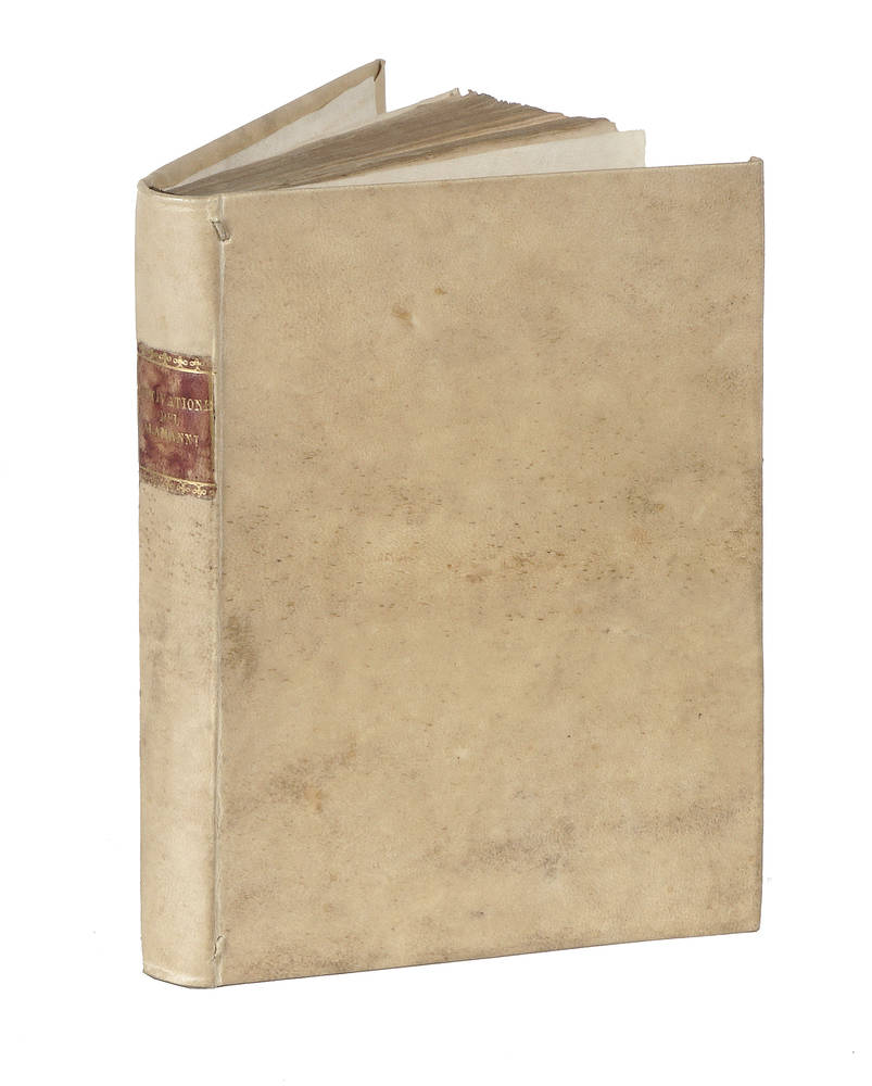 In-8° (mm205x145),Carte [1], 154, [8]. Con una vignetta incisa al frontespizio. Lievi aloni d'acqua nel margine inferiore per alcune carte nel testo. Lievi forellini di tarlo all'angolo inferiore di alcune carte. Legatura in piena pergamena settecentesca rimontata con sguardie rinnovate, titolo oro entro tassello al dorso. Buon esemplare.