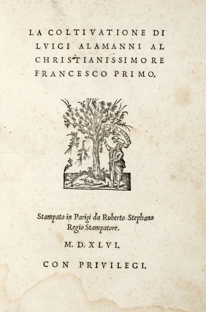 La Coltivazione Di/ Luigi Alamanni Al/ Christianissimo Re/ Francesco Primo.