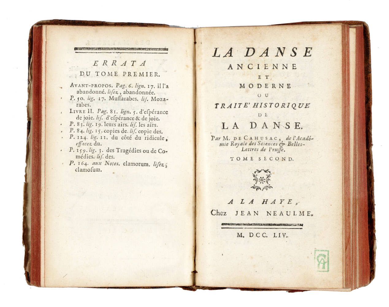 A La Haye, Chez Jean Neaulme, M.DCC.LIV (1754).
