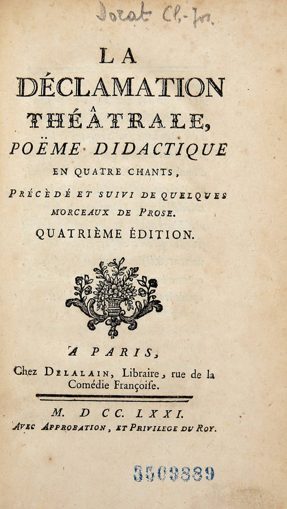 La déclamation théâtrale, poëme didactique en quatre chants, précèdé et suivi de quelques morceaux de prose. Quatrième édition.