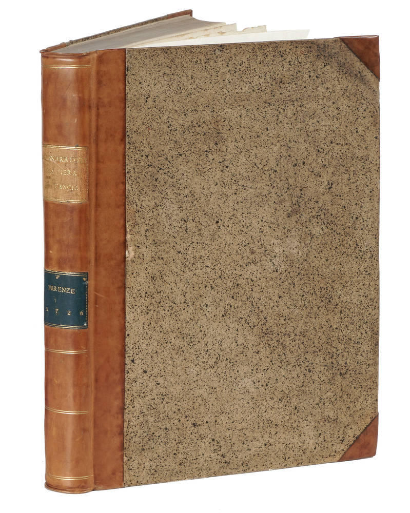 In-folio (mm 300x210), pagine XVI, 603, [1]. Bel ritratto in antiporta, inciso in rame da Vin. Franceschini, titolo in rosso e nero al frontespizio con graziosa vignetta, testatine e iniziali ornate xilogr. Legatura in mezzo vitello mod. con ampie punte, titolo oro in tassello pelle al dorso, tagli spruzzati in rosso. Bell'esemplare, ad ampi margini.