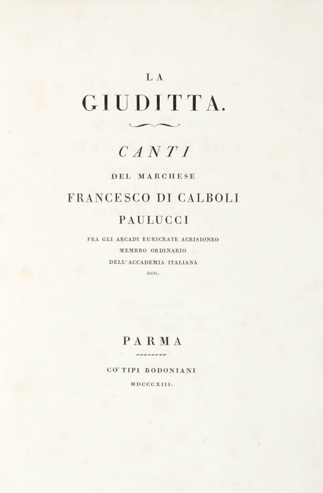 La Giuditta./ Canti/ Del Marchese/ Francesco di Calboli/ Paulucci/ Fra Gli Arcadi Euricrate Acrisioneo/ Membro Ordinario/ Dell'Accademia Italiana/ Ecc.
