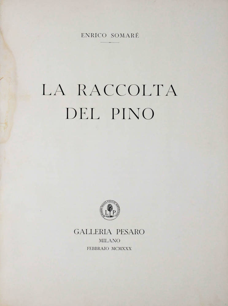 Catalogo, a cura di Enrico Somare', della mostra-vendita della collezione Del Pino, comprendente opere di: G. Palizzi, S. Lega, T. Signorini, L. Delleani, G. Fattori, N. Cannicci, E. Cecconi, V. Cabianca, L. Bechi, V. D'Ancona, M. Puccini, G. Boldini, A. Mancini, D. Morelli, P. Vetri, F. Rossano, L. Nono, F. Andreotti, M. De Maria, F. Zandomeeghi, T. Cremona, G. Induno, A. Rotta, G. Mantegazza, O. Borrani, S. De Tivoli, C. Banti, G. Abbati, S. Bruzzi, A. Tommasi, F. Gioli, L. Gioli, C. Ciani, G. Barili, U. Manaresi, C. Bartolena, F. Vinea, A. Monticelli, P. Joris, R. Rolland. Rara edizione numerata di complessivi 850 esemplari. Esempl.N.82.