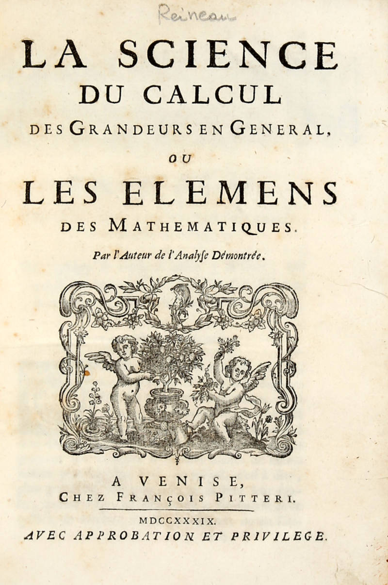 La science/ du calcul/ des Grandeurs en General,/ ou Les Elemens/ des Mathématiques...