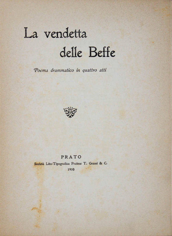 Prato, Società Lito-Tipografica Pratese T. Grassi & C., 1910.