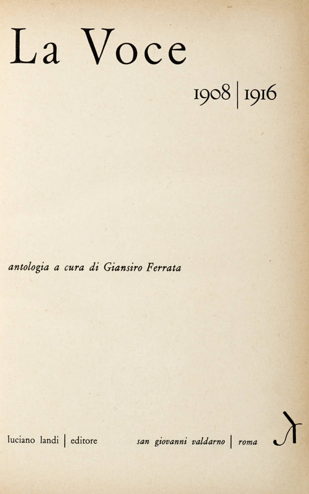La Voce. 1908/1916. Antologia a cura di Giansiro Ferrata.