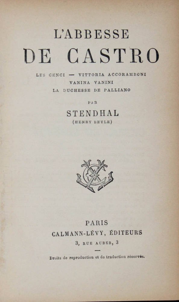 L'abbesse de Castro; Vittoria Accoramboni; Les Cenci; la duchesse de Palliano; Vanina Vanini.
