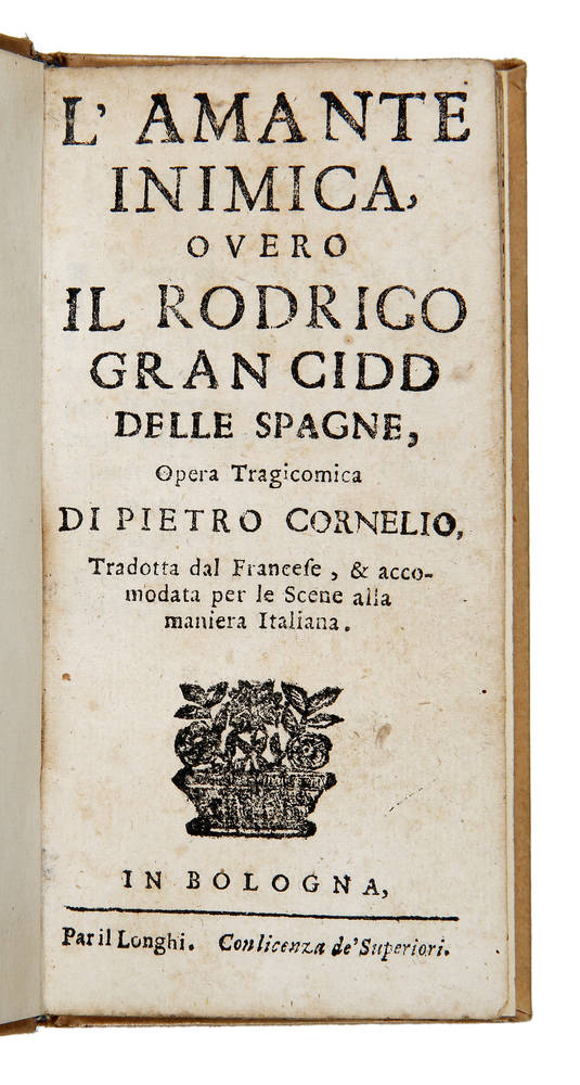 L'amante inimica overo il Rodrigo Gran Cidd delle Spagne, Opera tragicomica di Pietro Cornelio, tradotta dal Francese, & accomodata per le Scene alla maniera Italiana.