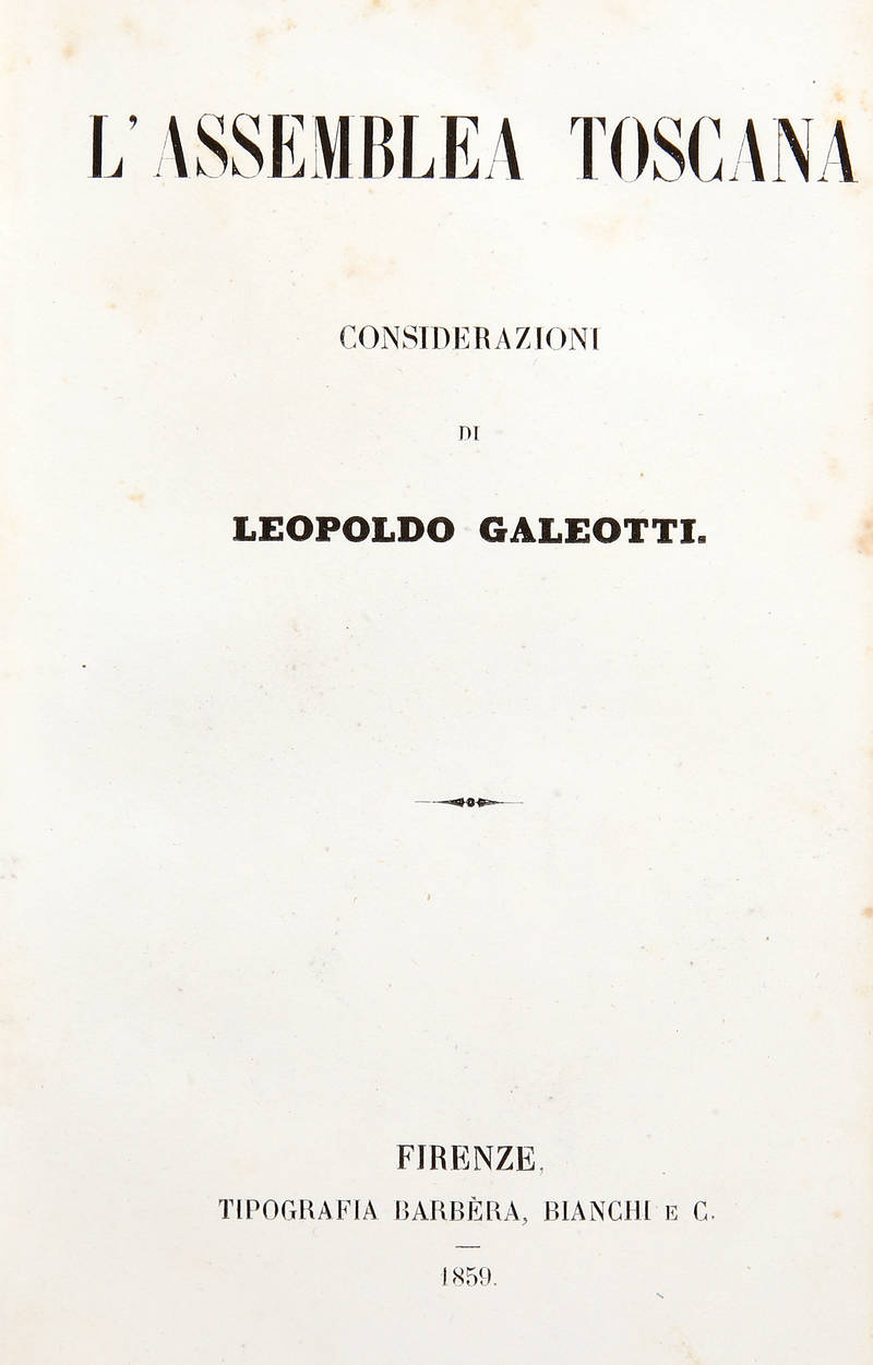 L'Assemblea Toscana. Considerazioni di Leopoldo Galeotti.
